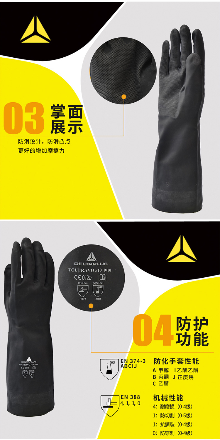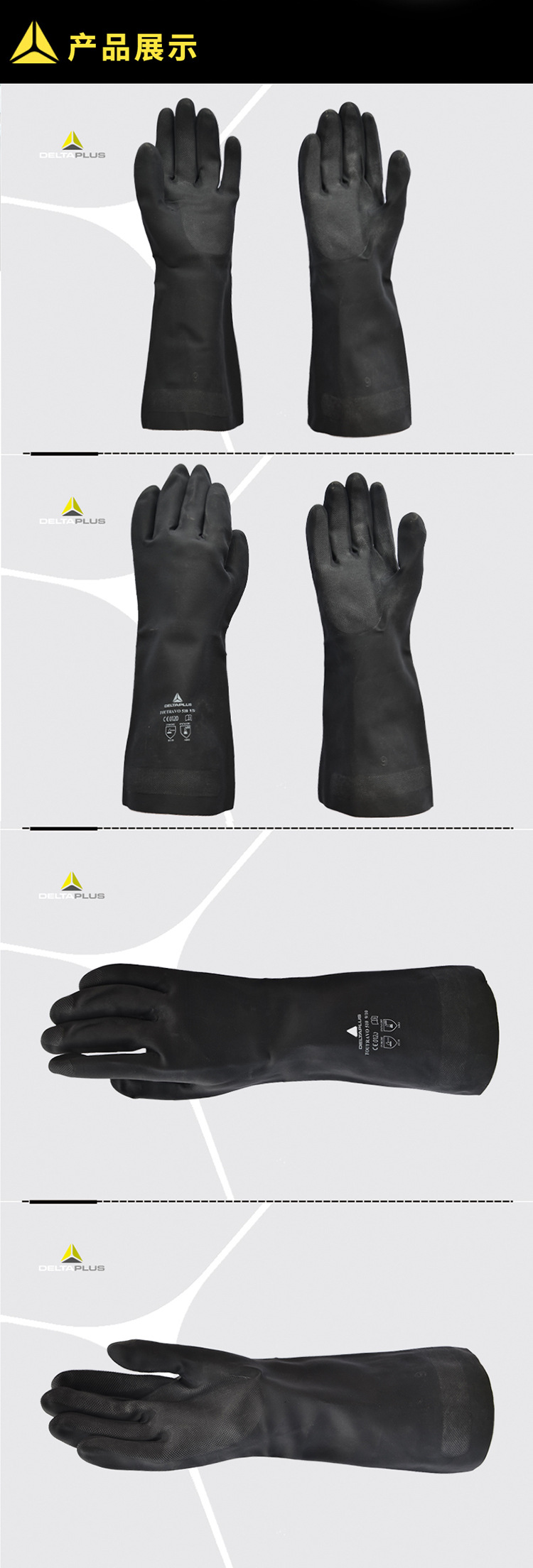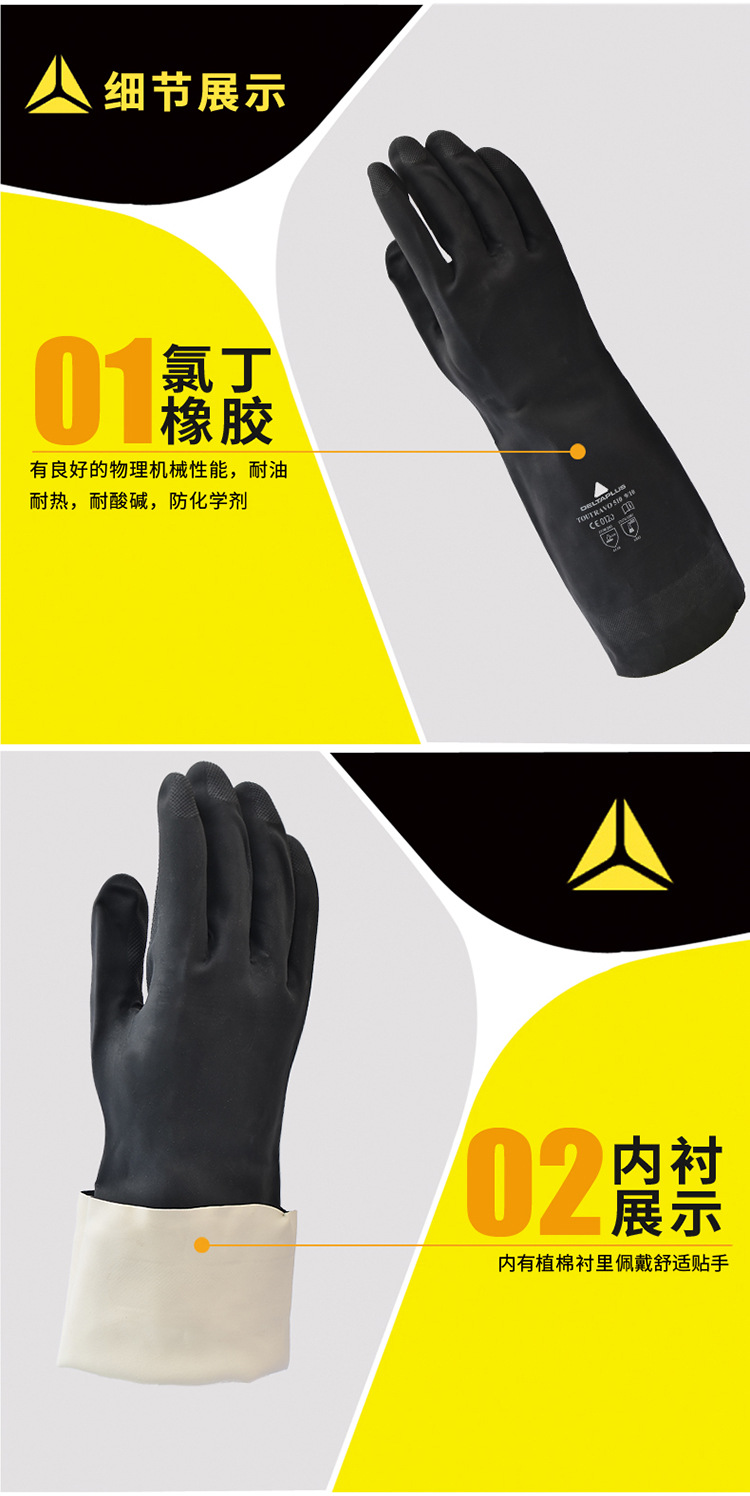 deltaplus/代爾塔201510 VE510氯丁橡膠耐酸堿耐熱防護手套耐油工業(yè)型防化手套