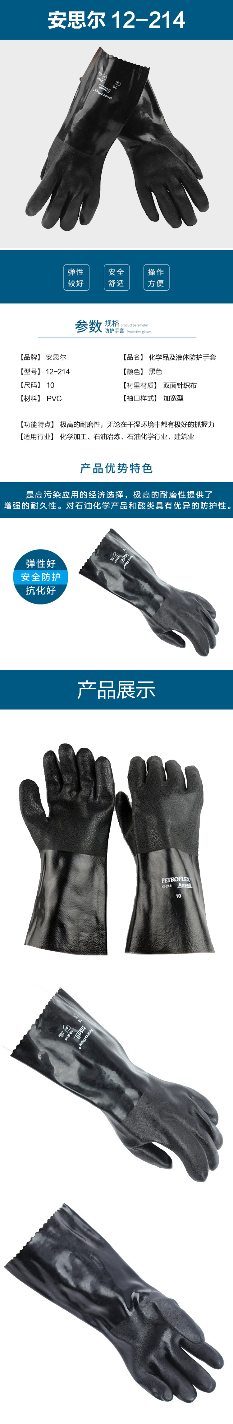 ansell/安思爾12-214厚實帶棉防化工業(yè)防護耐酸耐油防護手套