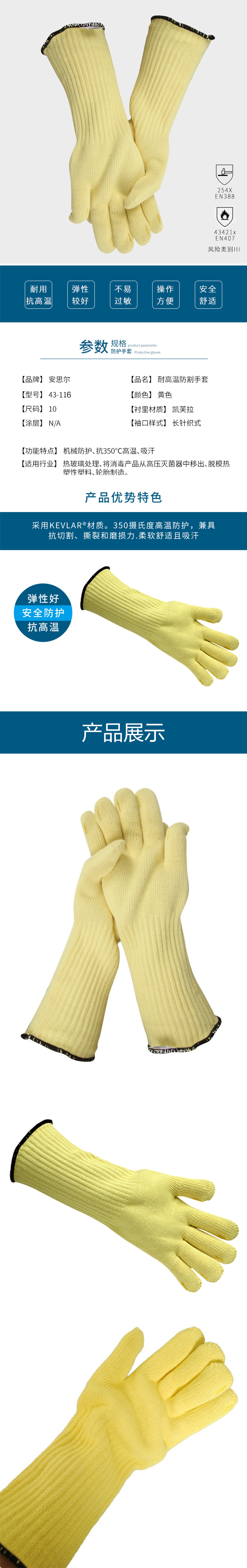 ansell/安思爾 43-116 耐高溫350℃隔熱手套 烤箱烤爐玻璃防割用手套