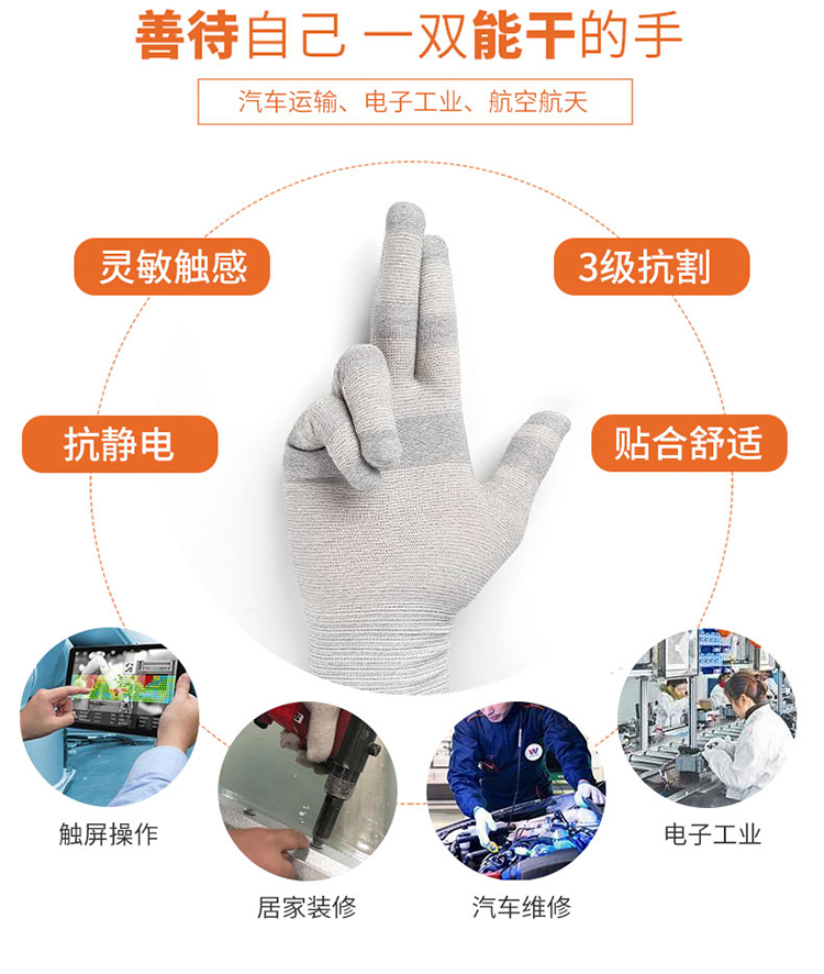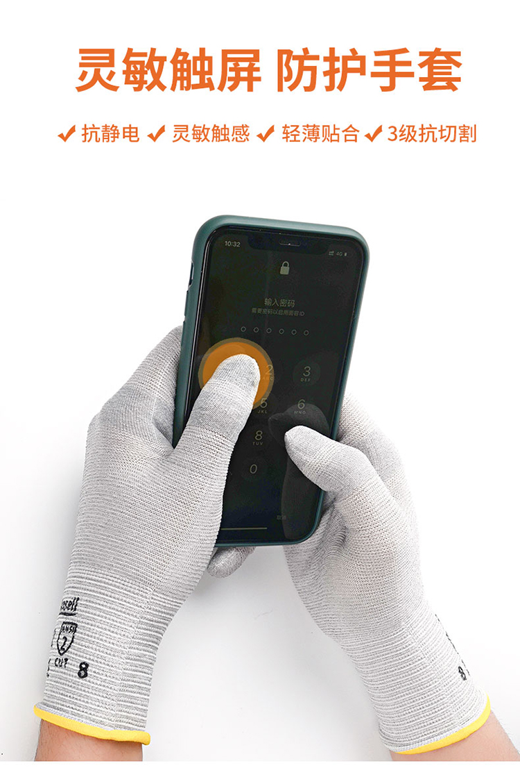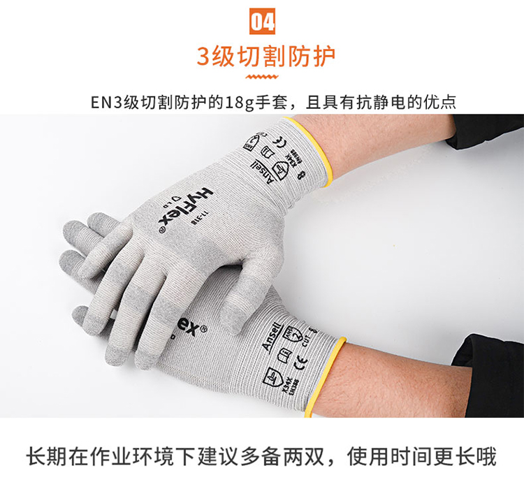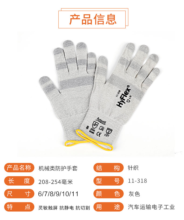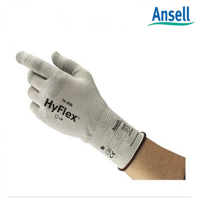 ansell/安思爾11-318精細操作防割抗靜電手套HyFlex 無涂層針織手套