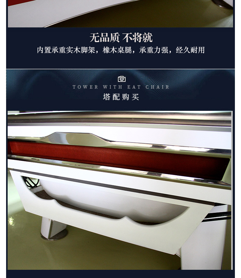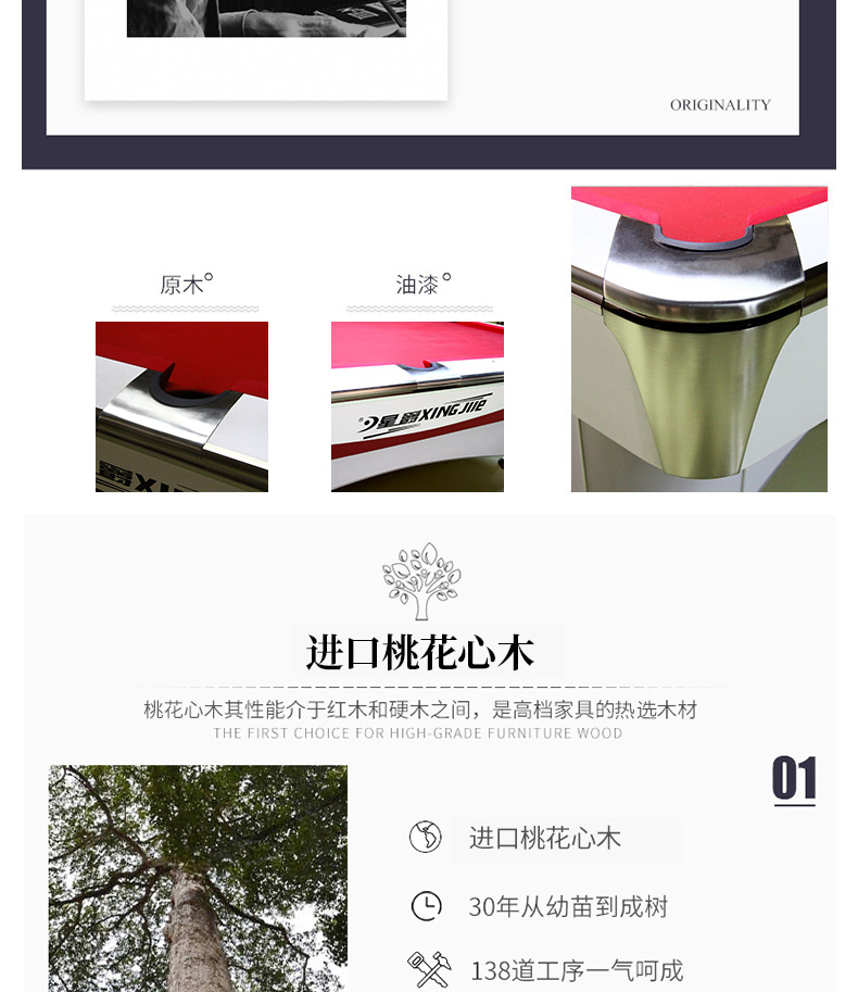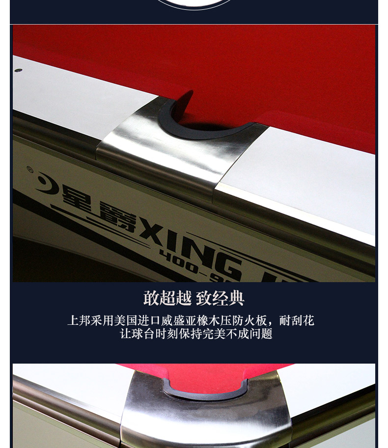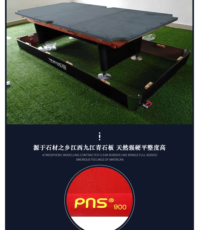 A級青石板,美國進(jìn)口防火板,實(shí)木扶手。尺寸:2.03*3.83*0.85米,配置:臺尼一張,英式球1盒,球桿4支,架桿4支,長打長架,巧粉12粒,手套2個(gè),皮頭10粒,膠水1粒,桿架1個(gè),三角框1個(gè)。
