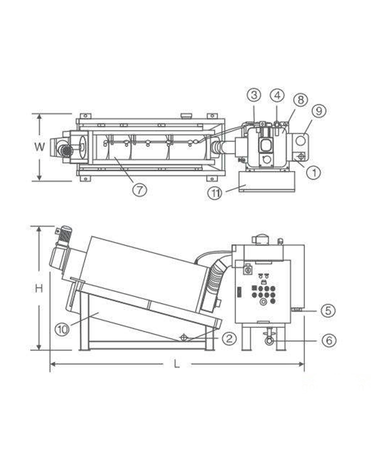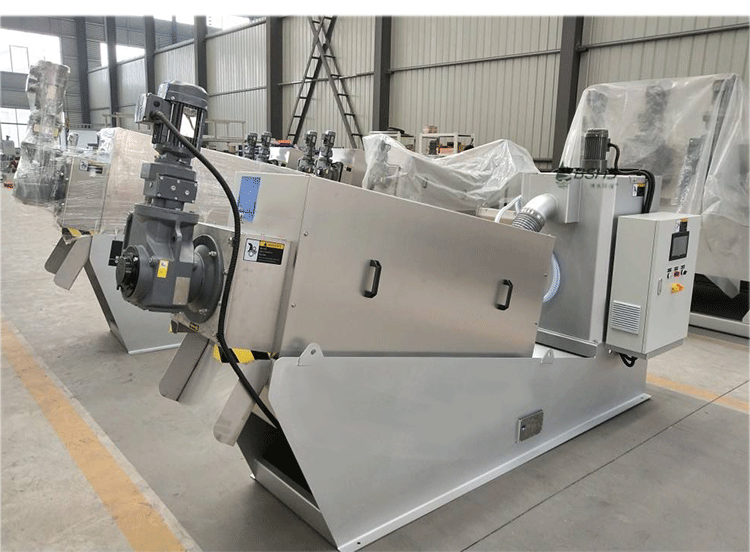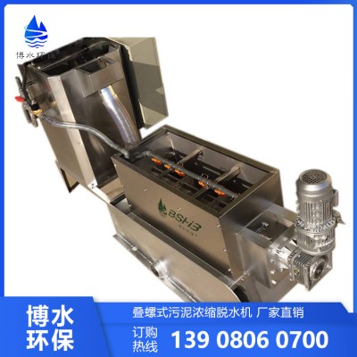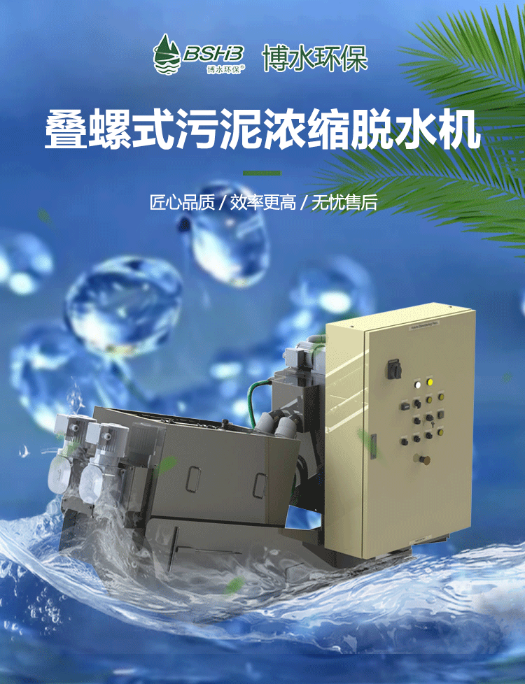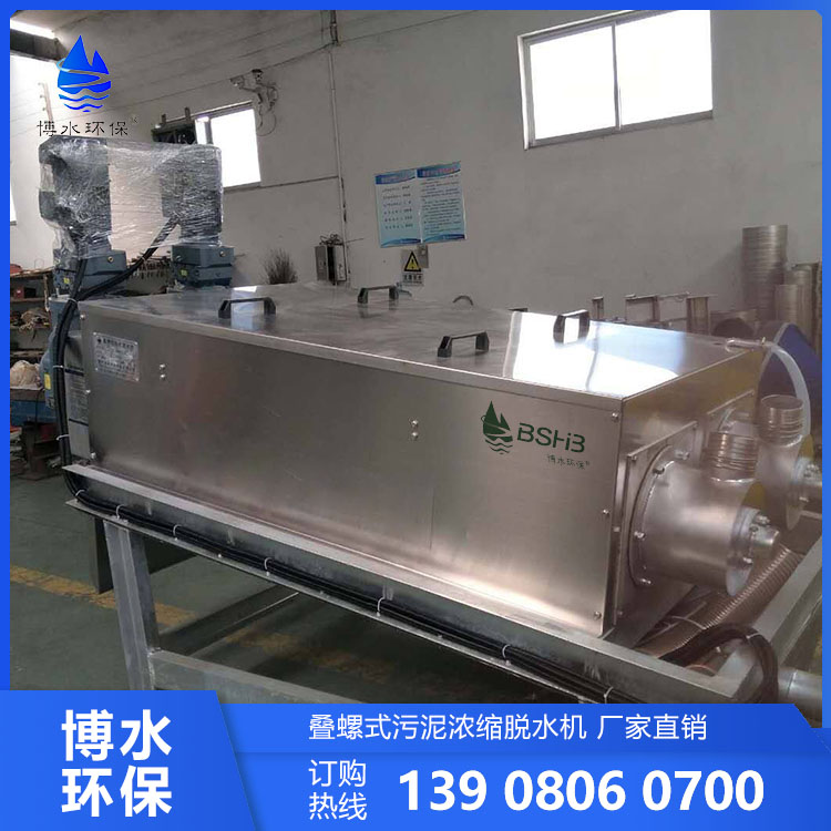 脫水機(jī)的構(gòu)造原理是疊螺主體是由固定環(huán)和游動(dòng)環(huán)相互層疊,螺旋軸貫穿其中形成的過濾裝置前段為濃縮部,后段為脫水部,固定環(huán)和游動(dòng)環(huán)之間形成的濾縫以及螺旋軸的螺距從濃縮部到脫水部逐漸變小。螺旋軸的旋轉(zhuǎn)在推動(dòng)污泥從濃縮部輸送到脫水部的同時(shí),也不斷帶動(dòng)游動(dòng)環(huán)清掃濾縫,防止堵塞。