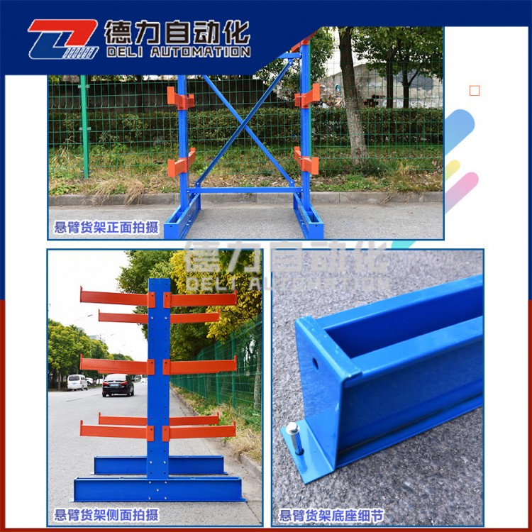 是由在立柱上裝設(shè)懸臂來(lái)構(gòu)成的,懸臂可以是固定的,也可以是移動(dòng)的。管材、板材儲(chǔ)存使用較多。根據(jù)承載能力可分為輕量型