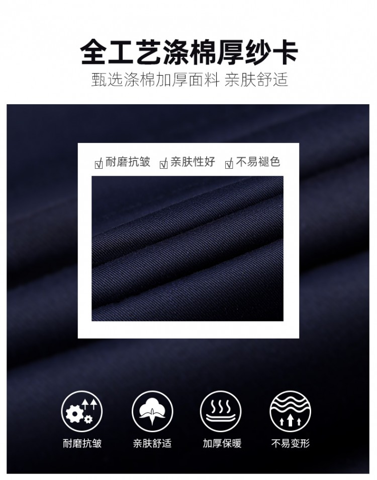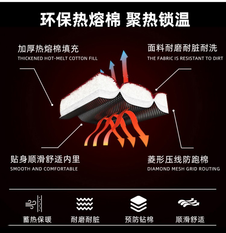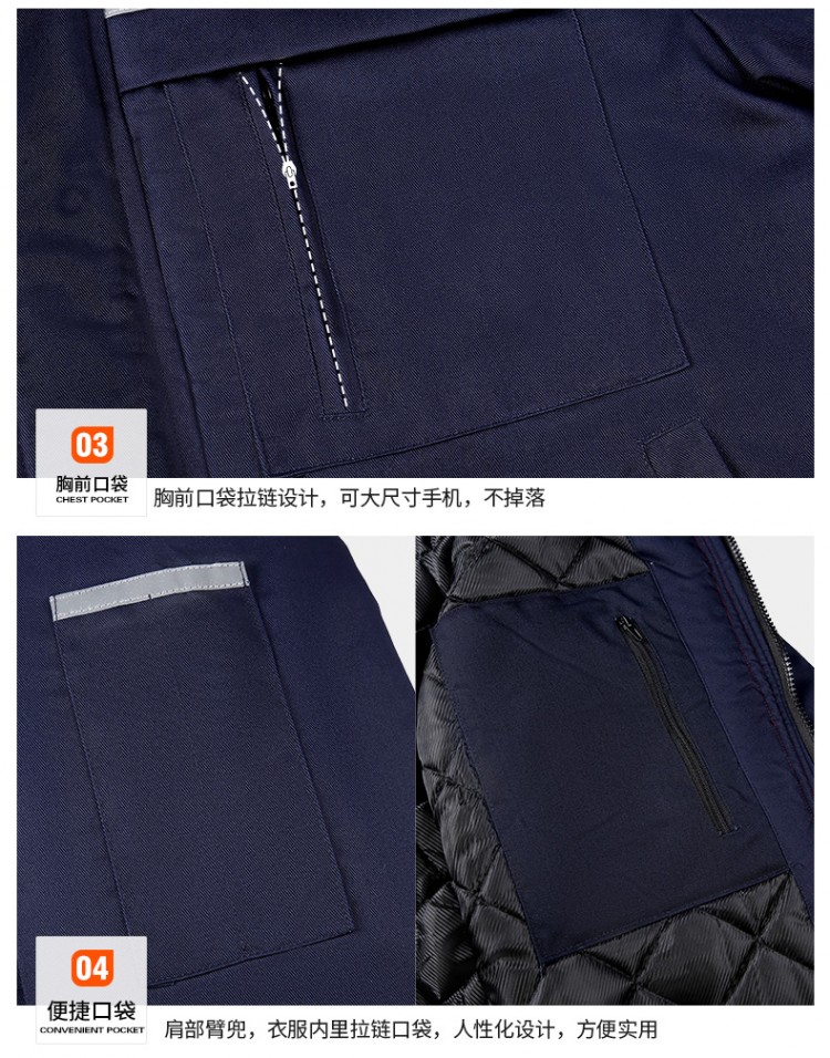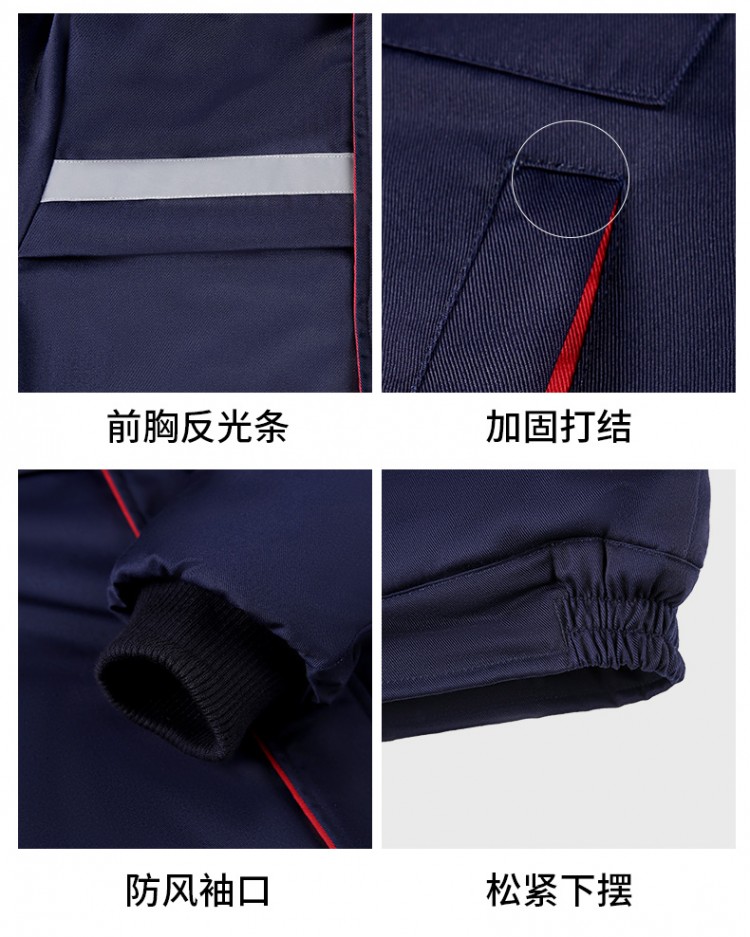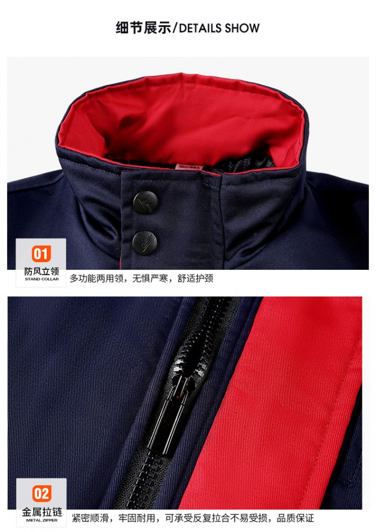 成都棉服廠(chǎng)家:生產(chǎn)工作服棉衣,冬季耐磨加絨加厚防寒反光棉衣,可定制,本款棉衣為全工藝滌棉厚沙卡面料,耐穿耐磨,不易變形,熱熔棉內(nèi)膽,保暖聚溫,不滾絮,防風(fēng)立領(lǐng),翻立兩用,方便實(shí)用,高亮反光條,夜間預(yù)警,工作無(wú)憂(yōu)。內(nèi)膽采用菱形壓線(xiàn),加厚內(nèi)膽,不易跑絨時(shí)刻保持身體溫暖舒適,隔絕冷空氣。前后高亮反光條設(shè)計(jì),夜間高度反光防護(hù) ,提升夜間識(shí)別度提高警示性,保暖同時(shí)保障夜間工作安全。