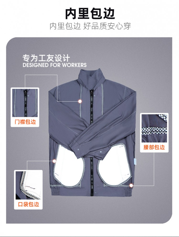 峨眉山定做工作服,本款工作服耐穿,二年穿著周期,耐磨性好,特點(diǎn)春秋款長袖工作服套裝,適合男女士汽修工廠車間裝修勞保服耐磨建筑工服裝,面料采用全工藝面料,內(nèi)里包邊,更耐穿,立體剪裁,襠部升級(jí)不開襠。