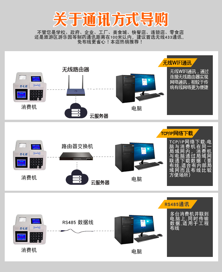 5、聯機脫機雙結合,TCP實時聯機(支持局域網、廣域網),支持脫機記賬消費(二維碼除外)