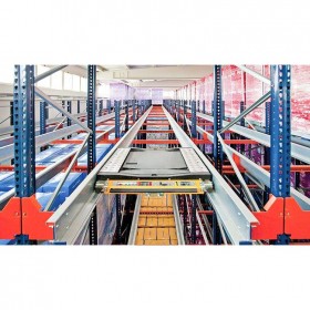 1、 存貨:由叉車將貨物放在貨架巷道導(dǎo)軌的較前端,通過無線電操作的WAP-1穿梭車,可以承載托盤貨物在導(dǎo)軌上運(yùn)行;