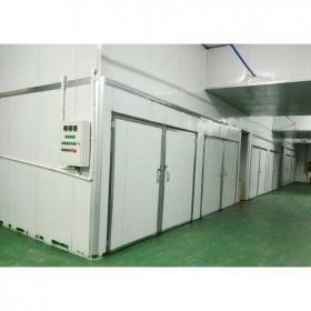 開啟電加熱器,電加熱產生的熱量將冷風補充口進入烘房內的干凈空氣加熱(溫度可控)經由循環(huán)風機通過風道鼓入到烘房內部,與烘車上需要干燥且均勻平鋪在烘盤上的物料或直接懸掛于烘車上的成型干燥制品,充分接觸進行較長時間的熱交換,脫去物料中的水份,含少量水蒸汽的濕空氣再由循環(huán)風機抽出鼓向循環(huán)風機再次進行加熱,再次與物料進行熱交換,當空氣中的濕度達到設置的濕度或設置的排濕時間時,排濕系統(tǒng)開啟進行排濕,相應補風系統(tǒng)開啟,補充干凈的冷空氣。干燥后達到要求的物料可將烘車推出取出。再將裝盤好濕物料的烘車推入烘房,繼續(xù)進行烘干操作。配電柜上設有熱電偶數(shù)字溫度顯示儀,各功能顯示儀表和速度控制裝置操作直觀、可靠。