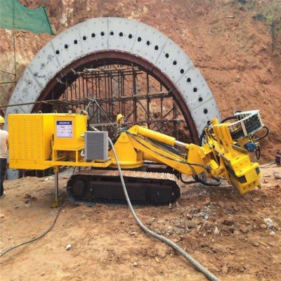 隧道施工機(jī)械,修建隧道所用的工程機(jī)械設(shè)備,分為隧道通用機(jī)械和專用機(jī)械。前者如空氣壓縮機(jī)、混凝土攪拌機(jī)、水泵等;后者按施工工序又可分為:開挖機(jī)械、裝運(yùn)機(jī)械、噴錨機(jī)械和襯砌機(jī)械等。隧道施工所用的機(jī)械應(yīng)具有以下特點(diǎn):①機(jī)械輪廓尺寸符合隧道內(nèi)施工場(chǎng)地和空間凈空的要求;②運(yùn)輸工具便于裝卸和調(diào)車等操作,以提高運(yùn)輸效率;③其動(dòng)力裝置不擴(kuò)散有害氣體,以免污染洞內(nèi)空氣;④符合地下工程施工技術(shù)安全的要求。開挖機(jī)械可采用隧洞掘進(jìn)機(jī)以刀具切割巖層,不用鉆眼爆破,它適用于中等硬度的巖石隧道。采用鉆眼爆破進(jìn)行開挖時(shí),用鑿巖機(jī)或鑿巖臺(tái)車進(jìn)行鉆眼。在軟巖或土質(zhì)隧道中,可采用盾構(gòu)進(jìn)行全斷面開挖;分部開挖則使用風(fēng)鎬或鑿巖機(jī)等風(fēng)動(dòng)工具。含水的土質(zhì)隧道若采用凍結(jié)法或硅化法加固地層后開挖時(shí),需有進(jìn)行凍結(jié)或硅化的專用機(jī)械。運(yùn)輸機(jī)械完成的工序包括裝、運(yùn)兩部分。裝碴機(jī)械將工作面上堆積的土石裝載在運(yùn)輸機(jī)具內(nèi)運(yùn)出洞外。運(yùn)輸機(jī)具又可分為有軌運(yùn)輸和無(wú)軌運(yùn)輸兩類。采用隧洞掘進(jìn)機(jī)或盾構(gòu)進(jìn)行開挖時(shí),該類機(jī)械自身備有裝碴設(shè)備。若采用鑿巖臺(tái)車或鑿巖機(jī)、風(fēng)鎬進(jìn)行開挖,需配備專用裝碴機(jī)械,其性能、容量和效率應(yīng)與運(yùn)輸工具配套。有軌運(yùn)輸多采用礦山機(jī)車牽引的梭式礦車、槽式列車或普通斗車;無(wú)軌運(yùn)輸則采用自卸式汽車或帶式輸送機(jī)。隧道及地下工程中采用噴錨支護(hù)時(shí),所用機(jī)械有:為設(shè)置錨桿進(jìn)行鉆孔,可用普通鑿巖機(jī)或?qū)S描弾r機(jī);采用砂漿錨桿時(shí),可用通用灌漿機(jī);噴射混凝土作業(yè)須使用專用的混凝土噴射機(jī)和混凝土噴射機(jī)械手。襯砌機(jī)械是指進(jìn)行現(xiàn)場(chǎng)灌筑整體混凝土襯砌需用的襯砌模板臺(tái)車,它由可走行的框架制成,用以支撐模板,也可用作灌筑時(shí)的工作臺(tái)。在混凝土達(dá)到規(guī)定齡期后,將模板收縮并離開灌筑地點(diǎn),臺(tái)車推向前進(jìn),進(jìn)行下一工作段的模板安置工作?;炷敛牧系闹苽浜瓦\(yùn)輸采用通用機(jī)械。灌筑混凝土用通用的混凝土泵和混凝土振搗器。隧道施工通風(fēng)多采用軸流式通風(fēng)機(jī)。它具有風(fēng)壓不高而供風(fēng)量大的特點(diǎn),符合隧道施工通風(fēng)的要求。在有瓦斯地段,除加強(qiáng)通風(fēng)外,應(yīng)采用防爆型機(jī)械施工。隧道施工中的輔助工作,如供應(yīng)壓縮空氣、排水、供電等均采用通用機(jī)械。隧道工程如采用沉井法(見地下工程沉井法施工)、頂管法或沉管法等特殊施工方法,均應(yīng)配備有關(guān)的專用機(jī)械設(shè)備。