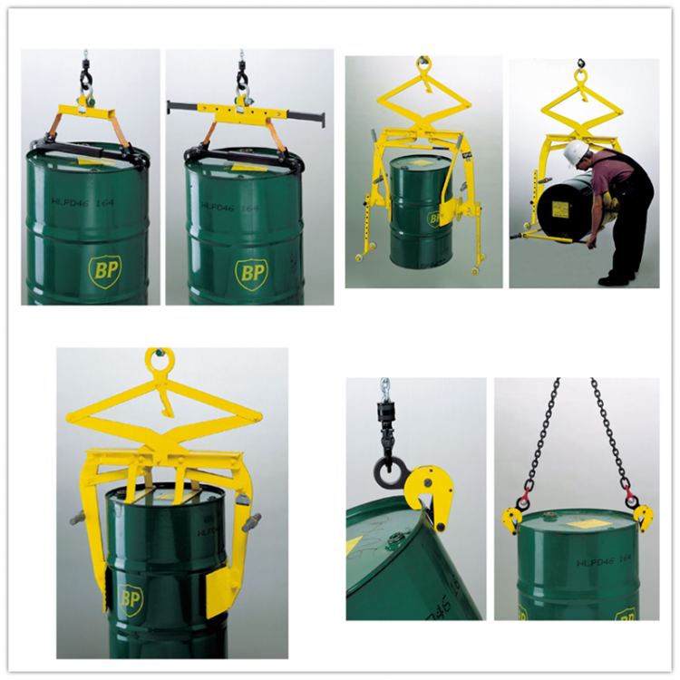 此系列桶夾用于垂直運輸油桶。夾鉗夾住油桶邊緣,并與其連接件一起操作。