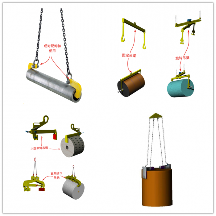 此系列吊夾用于安全地提升和運(yùn)輸大型袋子。是由 4 點(diǎn)吊梁在固定框架制作而成,包括 4 個(gè)帶安全搭銷(xiāo)的吊鉤,可快速安裝或拆卸袋子。