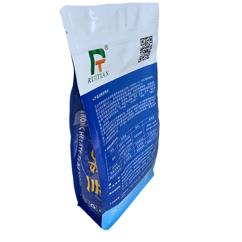 ④土壤適用PH值廣泛,在PH值4-9的范圍中有卓越的穩(wěn)定性,是目前國際公認(rèn)的螯合鐵。