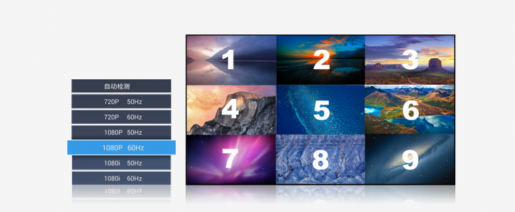 高清畫面分割器輸入分辨率自適應,并且可對輸出分辨率進行調(diào)整,達到顯示效果。
