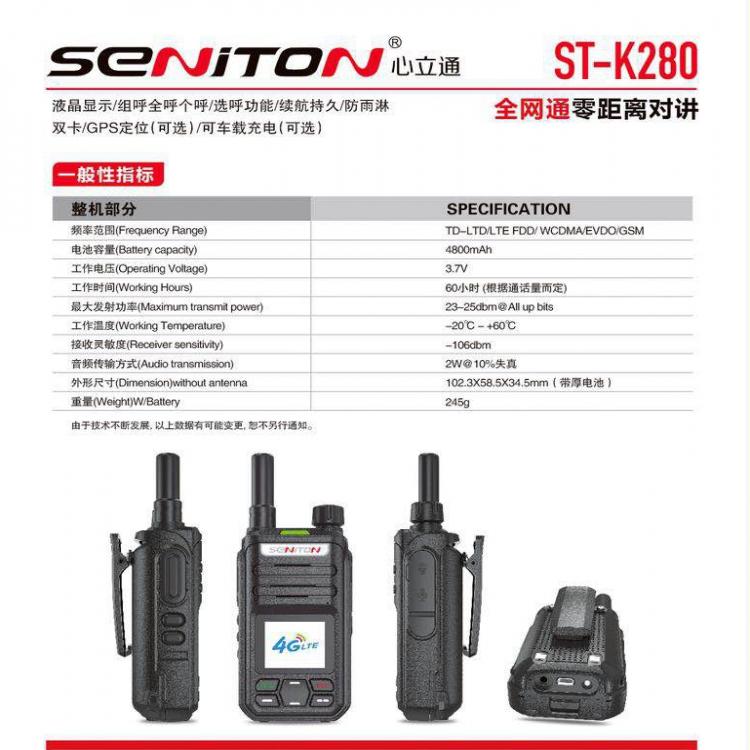 心立通 K-280全網(wǎng)通4G對公網(wǎng)對講機 帶三年資費 5年平臺費 成都現(xiàn)貨