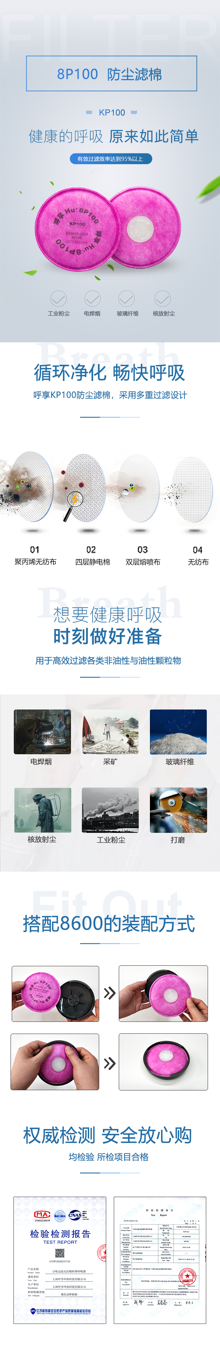 Hu/呼享8P100防塵濾棉KP100電焊煙核放射塵玻璃纖維過濾棉