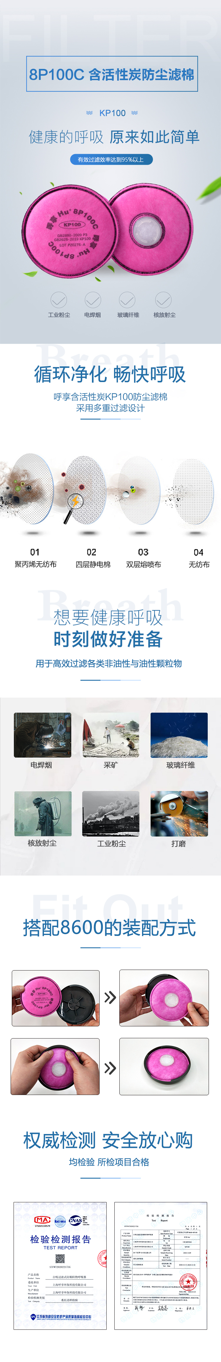 Hu/呼享8P100C活性炭防塵濾棉KP100電焊煙核放射塵玻璃纖維過濾棉去除有機蒸汽異味