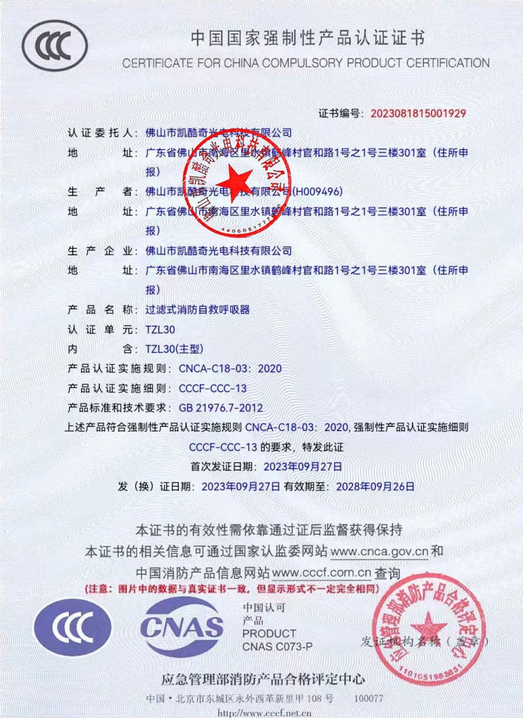 成都本地消防面具防火防煙防毒面罩酒店賓館家用火災(zāi)逃生面具自救呼吸器