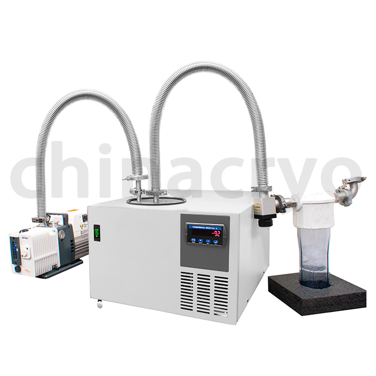 與真空泵配套使用,可以捕集設(shè)備裝置中抽真空排放出的水蒸氣及有毒有害氣體,提高真空設(shè)備的工作效率,大幅度減少真空泵的蒸汽吸入量,延長真空泵的使用時(shí)間。冷阱溫度采用數(shù)顯方式,便于確定真空泵開啟時(shí)間,防止水分被抽到泵中