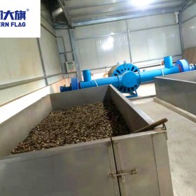 四川瓜子烘干機(jī)以燃煤(油或氣)或生物質(zhì)間接熱風(fēng)爐作為熱源,通過大風(fēng)量的送風(fēng)機(jī)將干凈熱空氣送入不銹鋼烘池,與不銹鋼池內(nèi)的物料表面接觸,將物料中的水份蒸發(fā)排出。由于采用了大風(fēng)量,因此大大增大了物料表面的熱空氣流速,增大了水份的蒸發(fā)強(qiáng)度,干燥的效率大大的得到提高。