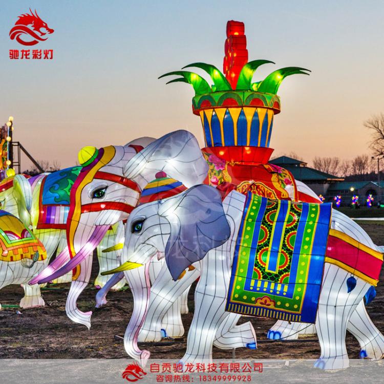 大象造型花燈籠春節(jié)花燈制作廠家大型元宵燈會彩燈制作造型燈籠定制彩燈展覽公司,彩燈制作日益精美,形象愈加動人,賞燈便成為了元宵節(jié)重大的事情,因此也造就了“東風(fēng)夜放花千樹,更吹落,星如雨。寶馬雕車香滿路。鳳簫聲動,玉壺光轉(zhuǎn),一夜魚龍舞”的盛況。