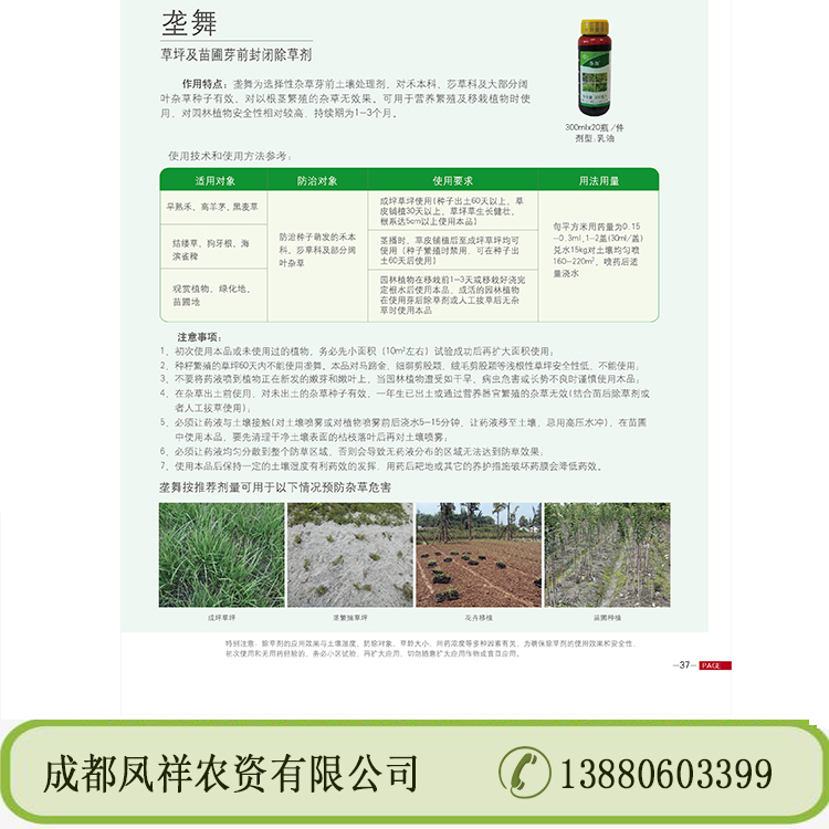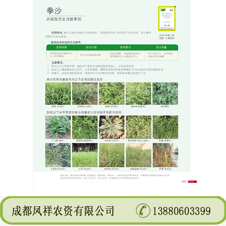 7、于作物同科雜草無效,特大草防除效果差、