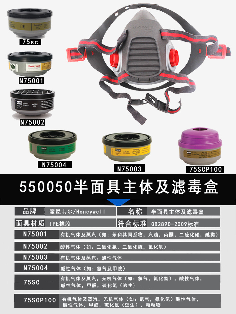 Honeywell/霍尼韋爾 550050M口罩自吸過(guò)濾式防毒面具NORTH防粉塵KN95半面罩
