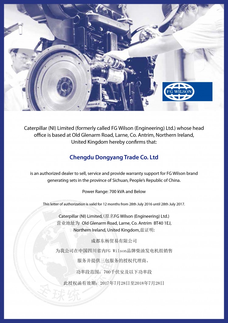 威爾信柴油發(fā)電機組(FG Wilson Diesel Generator Sets) 英國威爾信工程有限公司長期致力于內(nèi)燃發(fā)電機組的生產(chǎn)和銷售,在這一領(lǐng)域積累起十分豐富的經(jīng)驗,是真正的業(yè)界專家。產(chǎn)品規(guī)格范圍從5kVA~6500kVA。80年代中期開始,英國威爾信公司與當時獨立運作的英國勞斯萊斯集團(Rolls-Royce)屬下的工程機械局合作,100%使用勞斯萊斯發(fā)動機配套威爾信發(fā)電機組。80年代末,英國伯瓊斯(Perkins)公司看準英國勞斯萊斯(Rolls-Royce)在200kW以上發(fā)動機的技術(shù)和生產(chǎn)力量,作收購。自此,威爾信(FG Wilson) 公司生產(chǎn)的發(fā)電機組普遍以伯瓊斯.勞斯萊斯柴油發(fā)電機組(Perkins-Rolls-Royce Generator Sets)在市場上推廣。威爾信柴油發(fā)電機組的優(yōu)勢在于絕大部分機組配套件如控制屏、切換柜、機組底座、防音外殼、拖卡、幷機系統(tǒng)等都是由英國威爾信(FG Wilson) 原廠設(shè)計及采用大型專業(yè)設(shè)備加工制造,技術(shù)先進,一體化程度高,通用性強。威爾信發(fā)電機組產(chǎn)品質(zhì)量嚴格遵循ISO8528,BS4999,BS5000及歐共體CE等標準,幷通過ISO9001國際質(zhì)量認證和ISO14001國際環(huán)保認證。