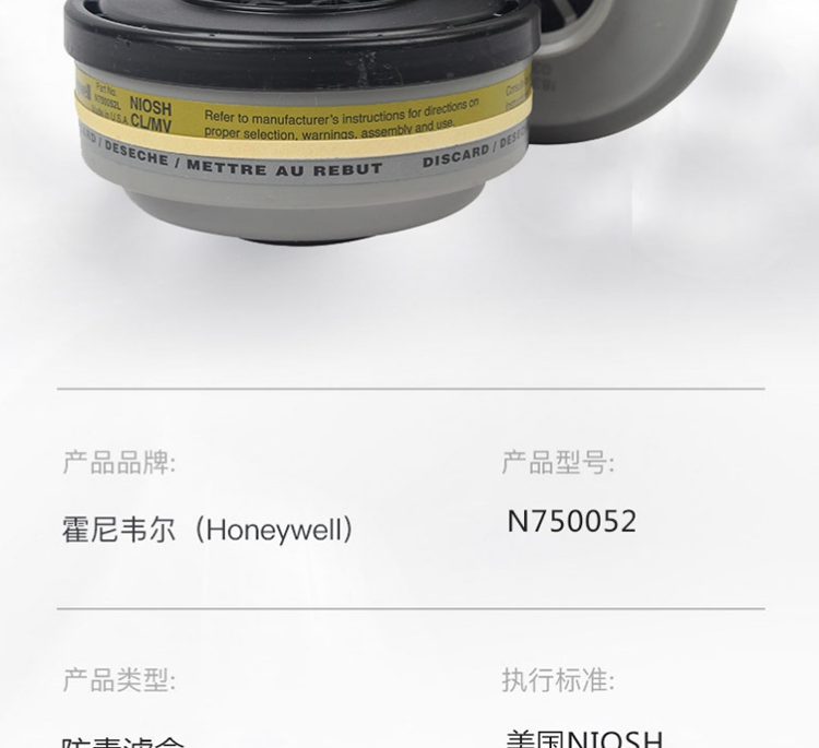 honeywell/霍尼韋爾N750052 N系列濾盒防護(hù)水銀蒸汽和氯氣濾盒