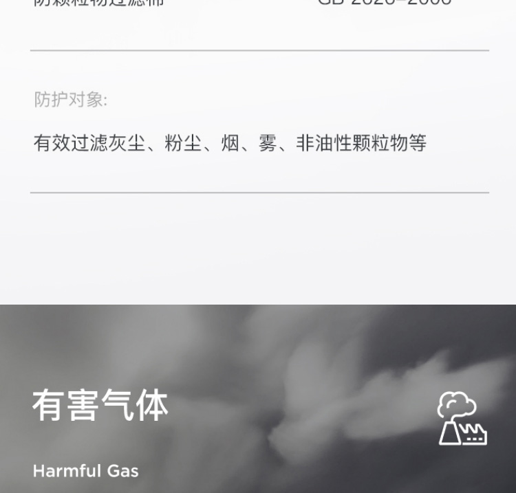 防護非油性及油性顆粒物,過濾效率高于99.97%