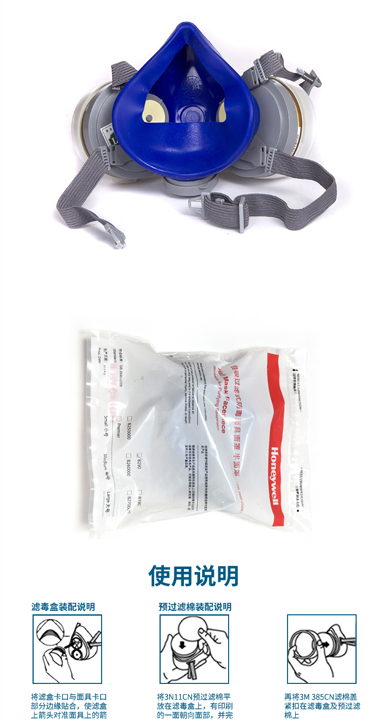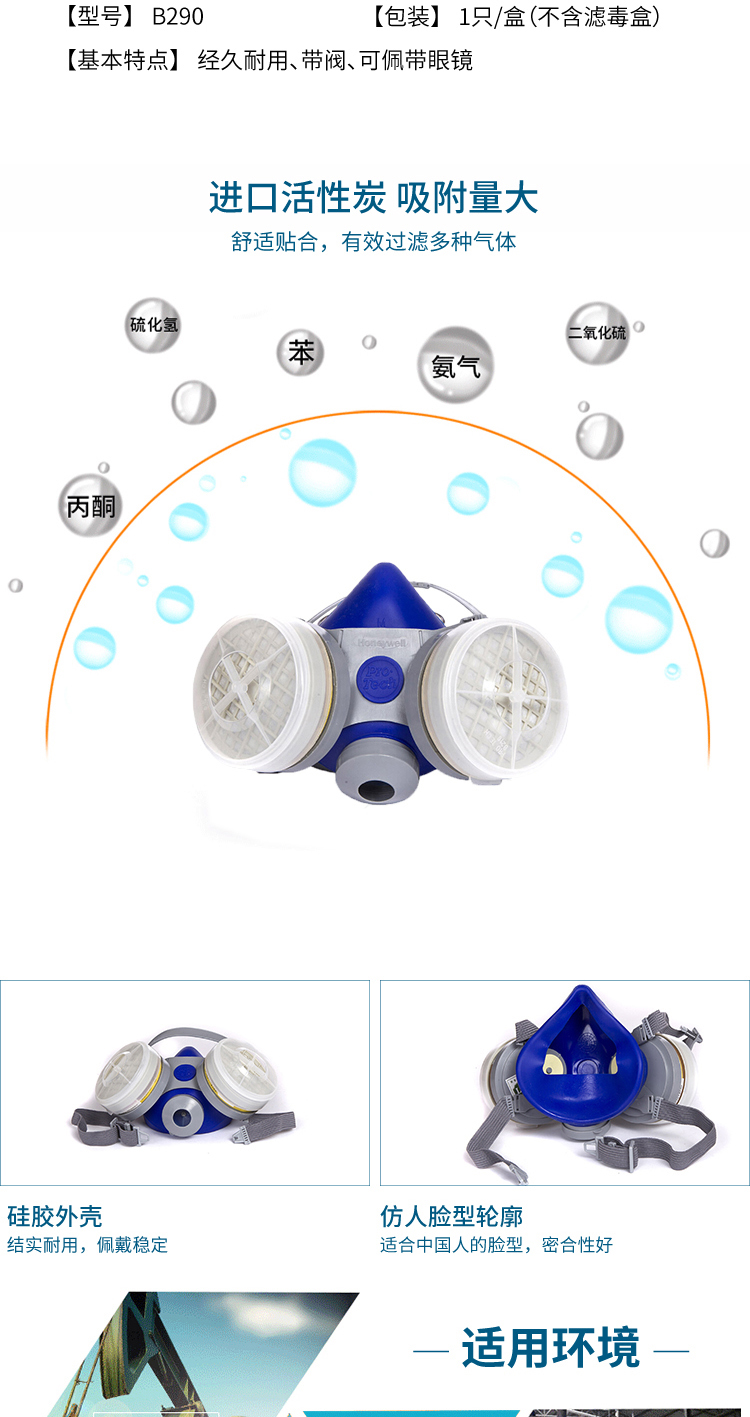 Honeywell/霍尼韋爾B290雙濾盒半面罩 硅膠材質(zhì) 防毒氣