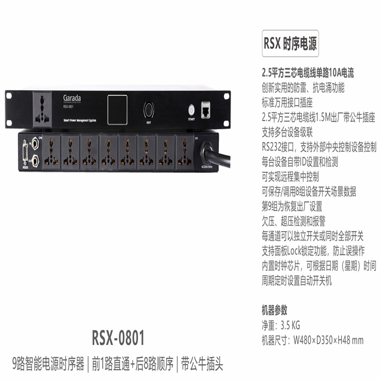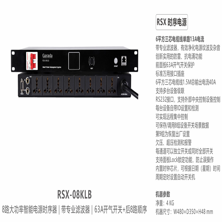 通道設置:前面板63A開氣開關保護+后面板8路順序開關