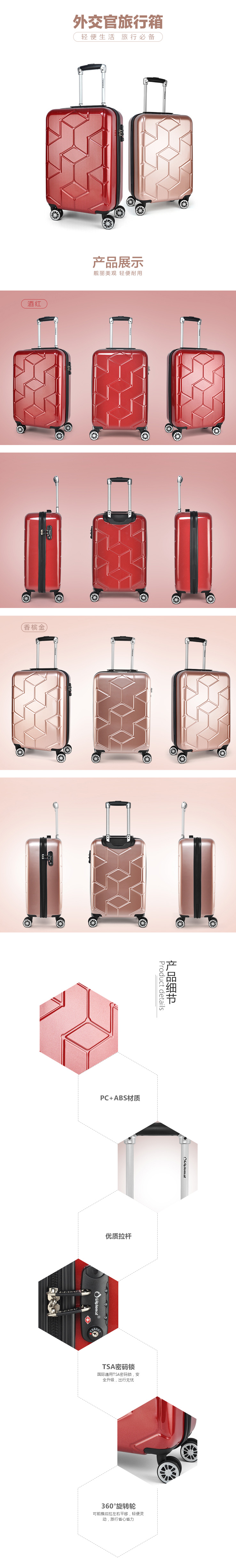 成都定制行李箱廠家 外交官DS-1292 20寸時尚拉桿箱旅行箱行李箱定制