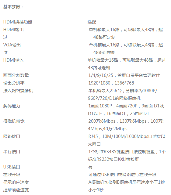 單屏,1畫面時1080P 4畫面時720P 9畫面D1及D1以下