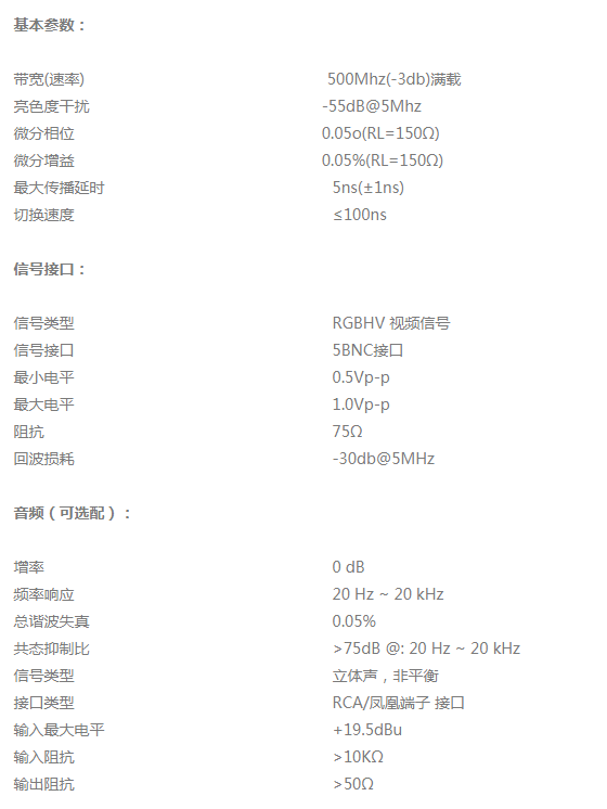 伯奧克RGB系列矩陣切換器是一款高性能的專業(yè)RGBHV信號切換設備,用于多個PC信號輸入輸出交叉切換,提供獨立的RGBHV分量輸入、輸出端子,每路分量信號單獨傳輸,單獨切換,使信號傳輸衰減降至特別低,圖像信號能高保真輸出。所有型號都支持通過螺絲鎖定器輸出平衡或非平衡立體聲音頻。使用預端接電纜組件可以省卻壓接操作,使安裝過程更為快速便捷。廣泛應用于廣播電視工程,多媒體會議廳,大屏幕顯示工程,電視教學,指揮控制中心等場合。