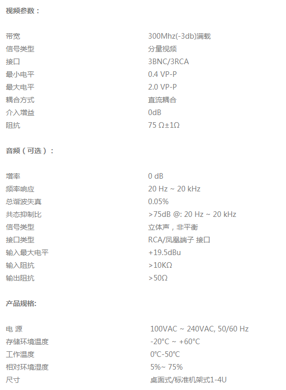 分量視頻分配器是伯奧克制造的一種支持高清晰數(shù)字電視專業(yè)接口(逐行色差YPbPr)的高性能三色差分量視頻分配器,可連接高清晰數(shù)字信號(hào)機(jī)頂盒、衛(wèi)星接收器、影碟機(jī)、各種高清晰顯示器/電視設(shè)備。目前可以在投影機(jī)或影碟機(jī)等家電上看到有YUV YCbCr Y/B-Y/B-Y等標(biāo)記的接口標(biāo)識(shí),雖然其標(biāo)記方法和接頭外形各異但都是色差端口。該系列產(chǎn)品可廣泛應(yīng)用于大屏幕投影顯示工程 、電化教學(xué)、指揮控制中心、多媒體會(huì)議室等場(chǎng)合。