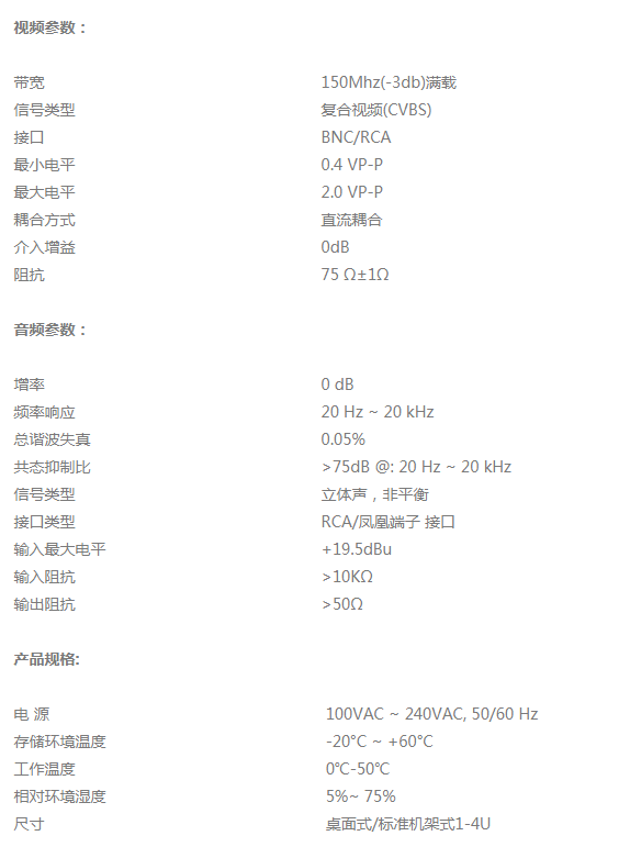視頻:RCA/BNC 音頻:RCA/鳳凰端子