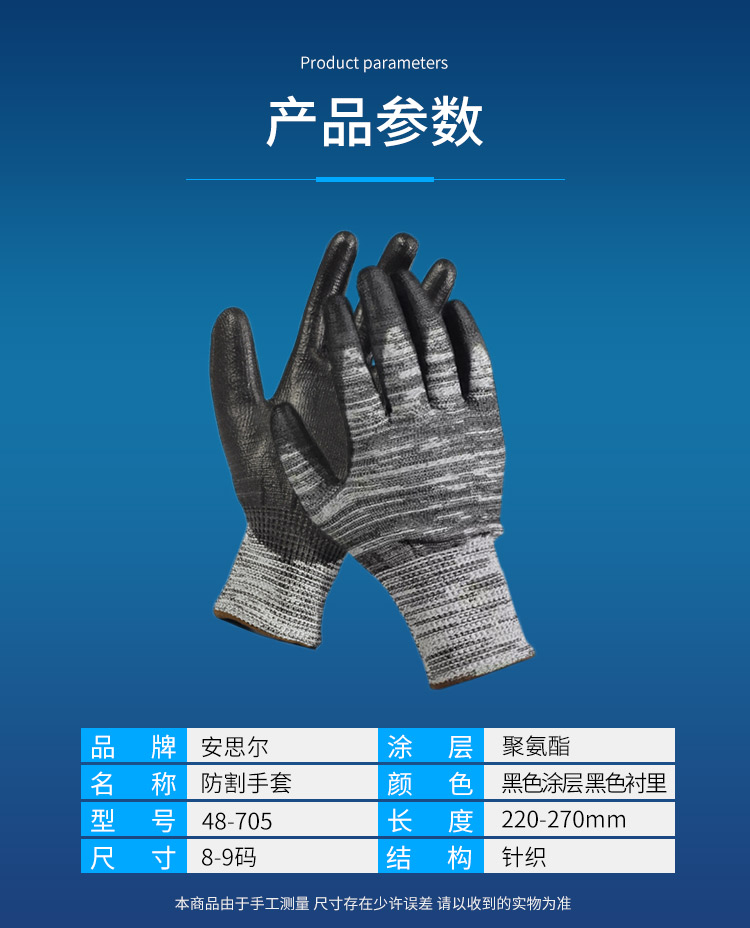 ansell/安思爾48-705 防割手套勞保PU涂掌工業(yè)機械作業(yè)手套