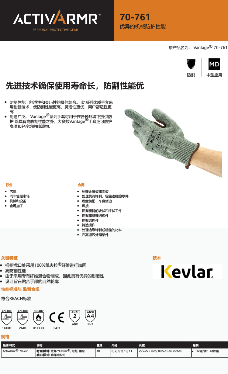 ansell/安思爾70-761尼龍 腈綸 Kevlar紗線針織機(jī)械防割手套