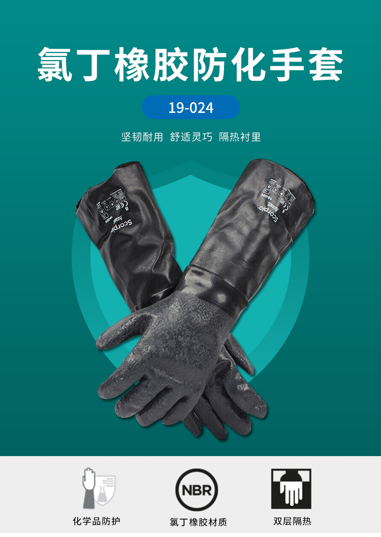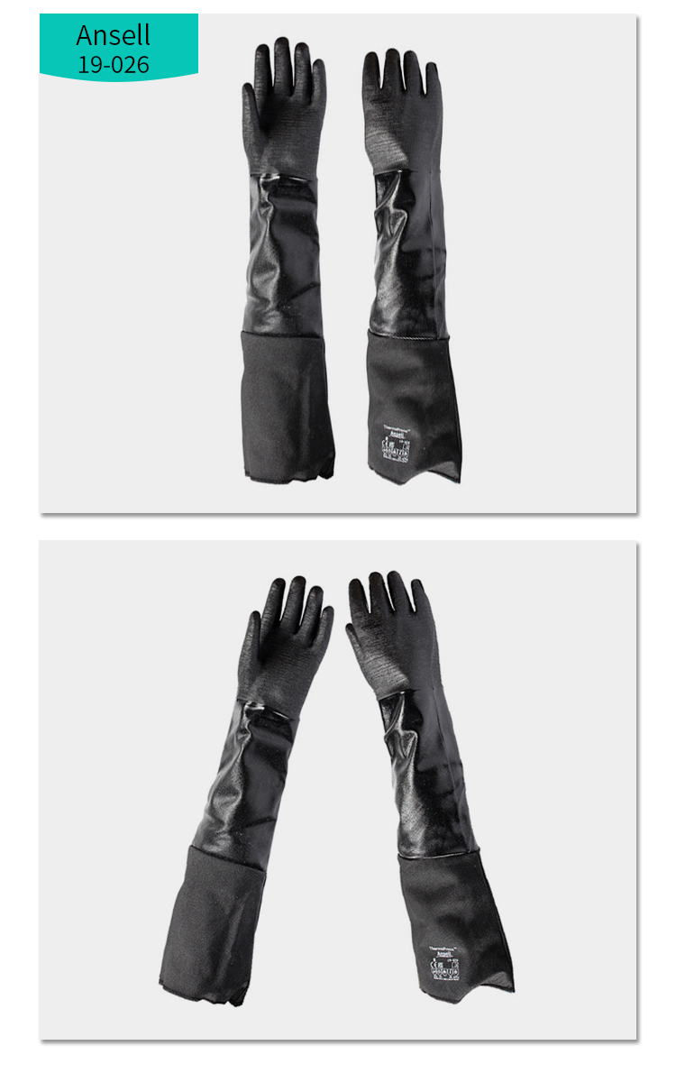 ansell/安思爾 19-026 氯丁橡膠手套防化勞保工業(yè)耐高溫加長(zhǎng)加厚