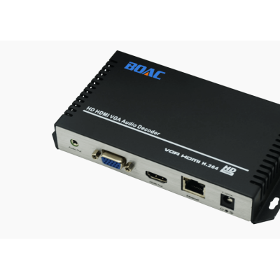高清解碼器是一款專業(yè)的高清音視頻解碼產品,該產品具有1路HDMI音視頻輸出接口,1路VGA視頻輸出,1路立體聲音頻輸出,支持H.264解碼格式。接收來自于編碼器的TS流,可根據(jù)不同需要設置視頻的分辨率,該設備具有高集成,低成本的優(yōu)勢,可廣泛應用于各種多媒體發(fā)布,數(shù)字標牌,信號發(fā)布等高清視頻系統(tǒng)中。