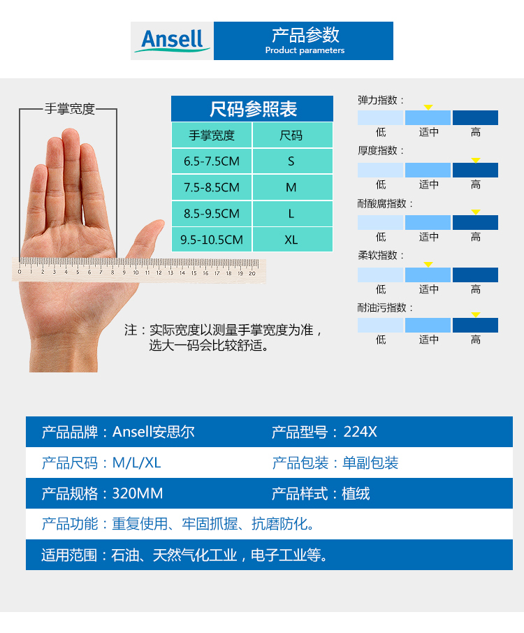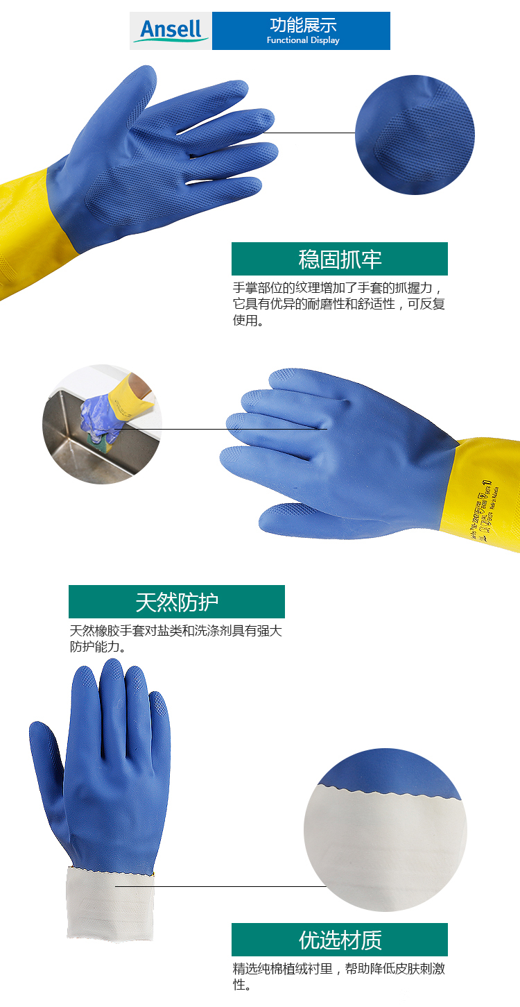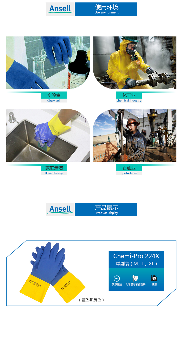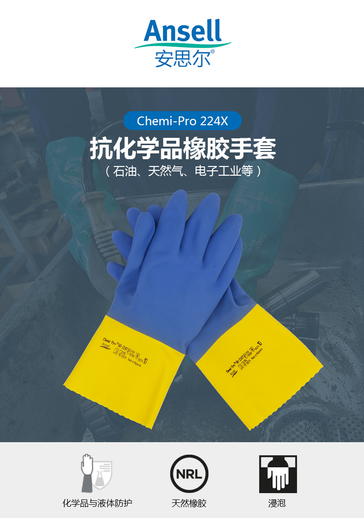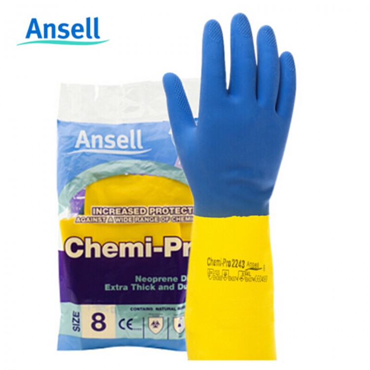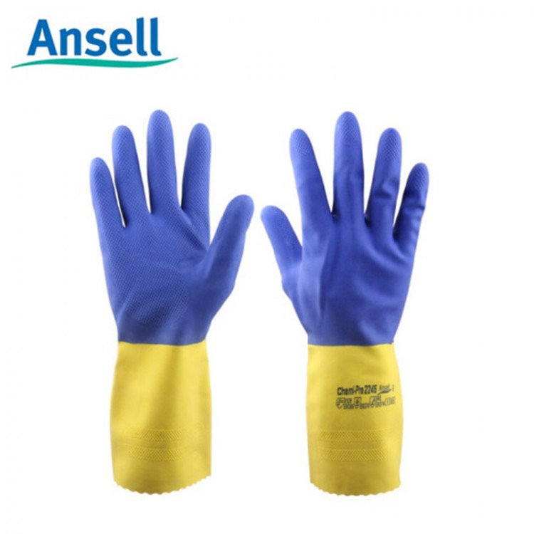 ansell/安思爾224X 防化手套 雙色氯丁橡膠化工清潔勞保手套