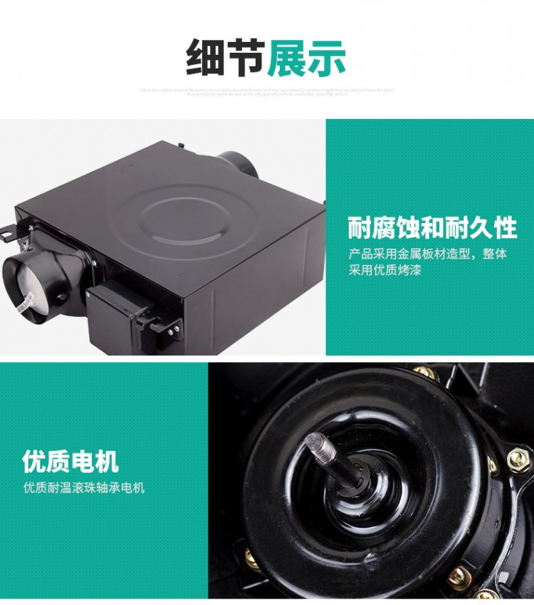 2、雙吸入式大風(fēng)輪,靜音管道風(fēng)機(jī)專門開發(fā)的扁平型蝸殼風(fēng)道和雙吸入式風(fēng)輪,實(shí)現(xiàn)了整機(jī)的超薄型外觀設(shè)計(jì),并使施工安裝更加簡(jiǎn)易。