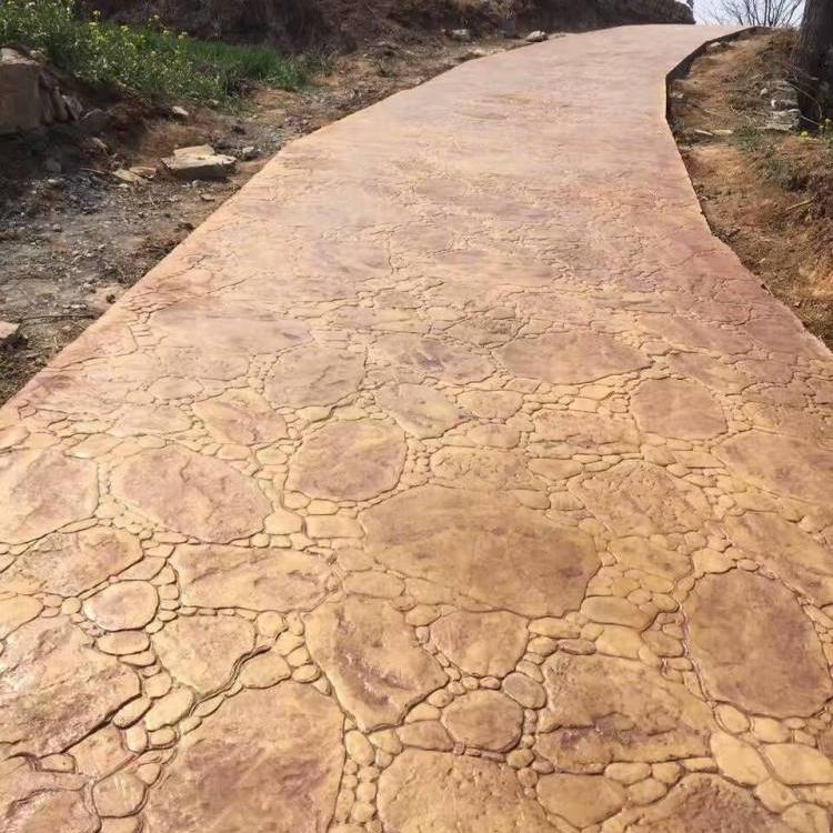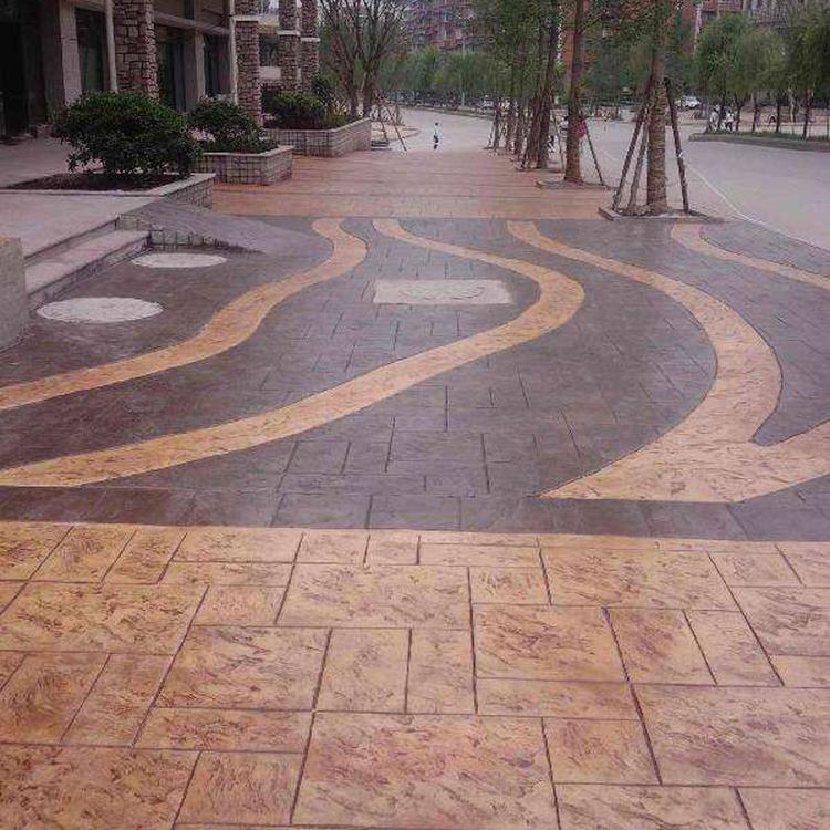 5、使用藝術(shù)地坪模具對地坪面層進(jìn)行紋理處理。藝術(shù)地坪模具應(yīng)配套使用,首先確定好紋理的分布方向,選好一塊模具放置的位置和角度,然后其它的模具依次緊貼一塊模具放置。彩色混凝土藝術(shù)地坪壓模采用壓模,壓模應(yīng)由技術(shù)較好的人員進(jìn)行作業(yè)以保證壓紋深度一致和模具放置的準(zhǔn)確性。