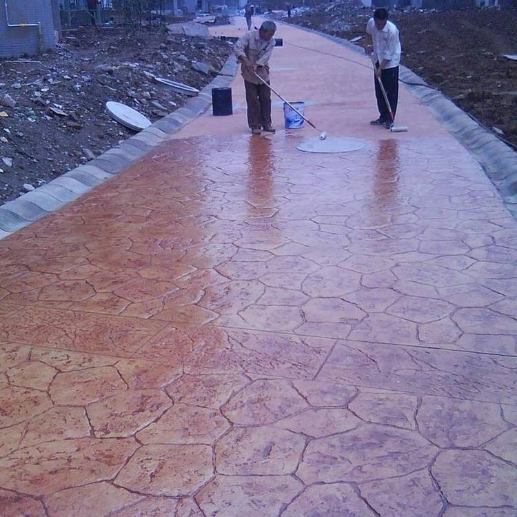 7、理論上對藝術(shù)地坪封閉2-3天后進(jìn)行沖洗,正常情況下為了防止新造路面被污染,工程全部紋理壓印完成后統(tǒng)一進(jìn)行沖洗。沖洗時(shí)不必將脫模粉全部沖洗干凈,應(yīng)留有10%左右的脫模粉顏色,這樣的藝術(shù)地面就會有效果很好的漸變效果。