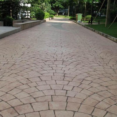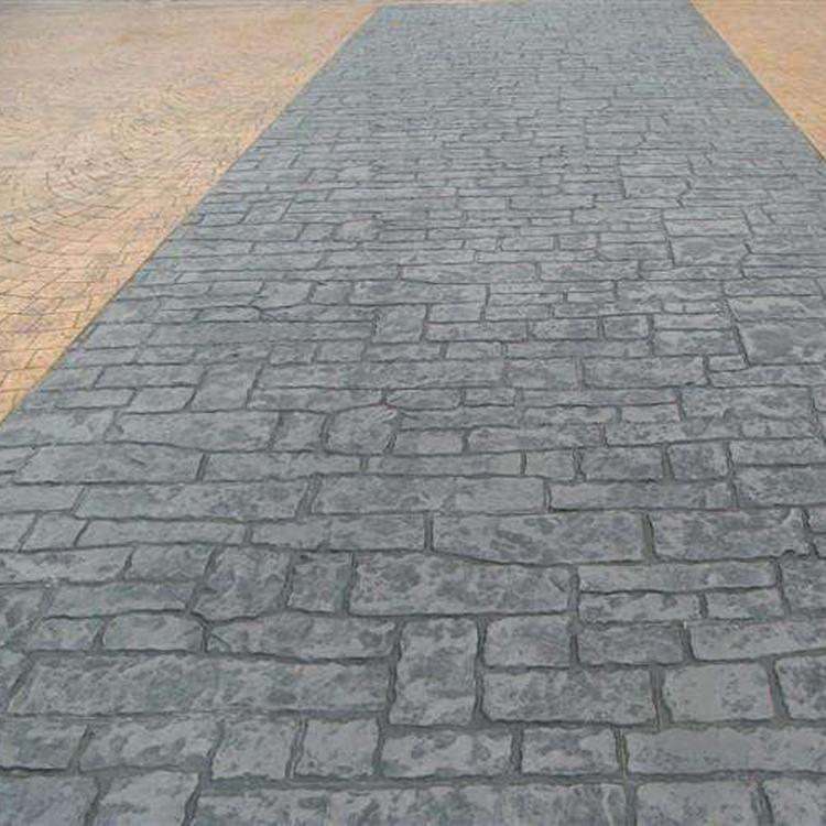 5、使用藝術地坪模具對地坪面層進行紋理處理。藝術地坪模具應配套使用,首先確定好紋理的分布方向,選好一塊模具放置的位置和角度,然后其它的模具依次緊貼一塊模具放置。彩色混凝土藝術地坪壓模采用壓模,壓模應由技術較好的人員進行作業(yè)以保證壓紋深度一致和模具放置的準確性。