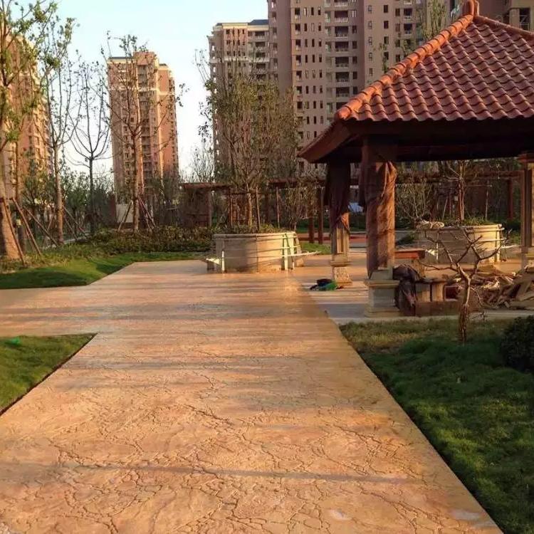 7、理論上對藝術(shù)地坪封閉2-3天后進(jìn)行沖洗,正常情況下為了防止新造路面被污染,工程全部紋理壓印完成后統(tǒng)一進(jìn)行沖洗。沖洗時不必將脫模粉全部沖洗干凈,應(yīng)留有10%左右的脫模粉顏色,這樣的藝術(shù)地面就會有效果很好的漸變效果。