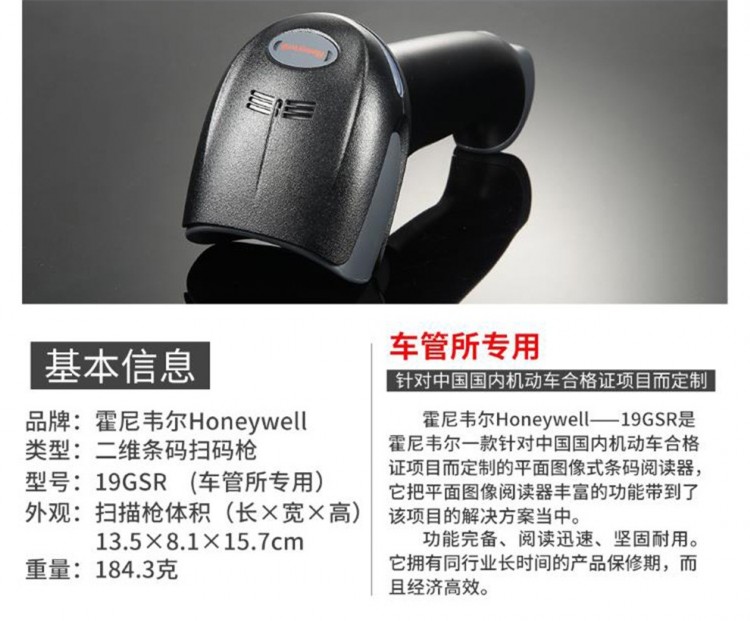 Honeywell霍尼韋爾19GSR掃描槍車管所機動車合格證讀碼器4600q-2