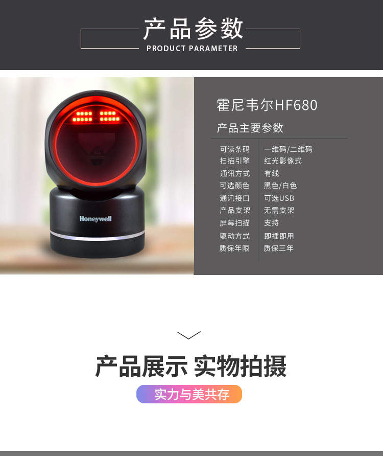 Honeywell霍尼韋爾HF680二維固定式掃描平臺商超掃碼槍替代7120