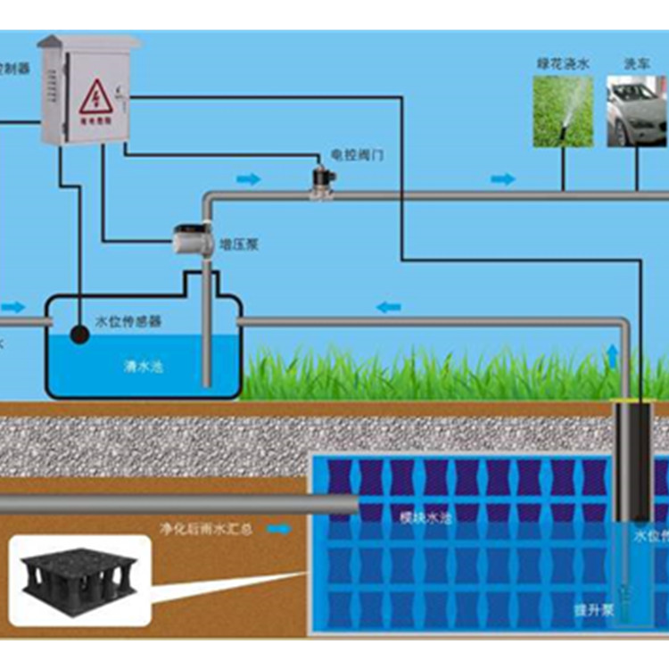 雨水收集模塊是海綿雨水收集利用系統(tǒng)中的一部分,若干個雨水收集模塊單元組合起來,形成一個地下貯水池。在水池周圍根據(jù)工程需要包裹防滲土工布或透水土工布,組成貯水池、滲透池、調(diào)洪池不同類型。用雨水收集模塊組裝水池,安裝方便,承載力大,不滋生蚊蠅及藻類,且在臨建地區(qū)域使用后,可以拆除遷移到其它區(qū)域繼續(xù)使用。該設(shè)備適用于大型建筑小區(qū)、工業(yè)園區(qū)、廣場及廠房區(qū)域的雨水收集利用。雨水收集模塊貯水池能有效的將收集來的雨水進行存儲,這些存儲的雨水資源,經(jīng)過處理后可用于沖洗廁所、清洗路面、澆灌草坪、水景補水,甚至用于循環(huán)冷卻水和消防水。