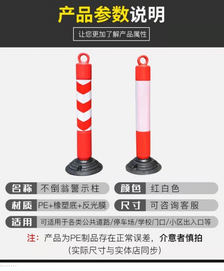 包郵塑料警示柱橡皮筋彈力柱隔離樁護(hù)欄交通設(shè)施路障錐反光防撞柱
